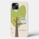 Brown Tree Branch Leaves Custom Name Blue Owl Case-Mate iPhone Case