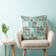 Brown turquoise patchwork of square patches cushion