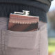 This sophisticated flask, inspired by rich brown leather and an unzipped brass zipper and sensuous satin, has the look of fine leather including piping and stitching. Personalise with Initials or a Monogram.