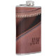 Brown Unzipped faux Leather Initials Photographic Hip Flask