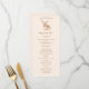Host a memorable Easter brunch with this beige menu card designed by Destei. The design features a brown bunny with extra long ears and pink inside them. The card includes personalizable text areas for starters, main course, dessert and beverages, making it easy to create a custom menu for your table.