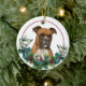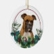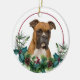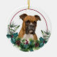 Brown White Boxer Dog Evergreen Wreath Ceramic Ornament