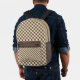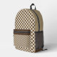 Brown White Gingham Printed Backpack