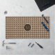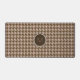 A classic houndstooth design in shades of brown and tan creates a fun and updated pattern with a final accent of a metallic-like rose gold mixed in to create a design that will really pop. Customise the monogram in the circle with your initial to create a unique desk mat for your work or play space.
