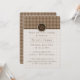 A classic houndstooth design in shades of brown and tan creates a fun and updated pattern with a final accent of a metallic-like rose gold mixed in to create a design that will really pop. A brown and tan circle holds a monogram and creates a frame for the lower portion of the card where you can find sample text that you can customise to create a personalised invite for your event.