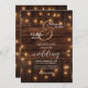 Brown Wood Rustic String Lights QR Code Wedding Invitation