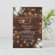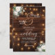 An elegant wedding invitation with string lights, white roses and elegant calligraphy that you can customise with your details.