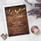 Brown Wood Wall with Edison Lights Let's Celebrate Invitation