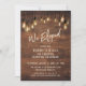 Brown Wood Wall with Edison Lights, We Eloped Invitation