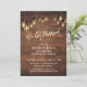 Brown Wood Wall with Edison Lights, We Got Married Invitation