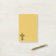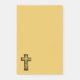 A set of 4x6 sticky notes with a wooden cross illustration in shades of dark brown around the border giving it a burnt look while the rest of the cross is a golden brown with lines and etchings in the wood.