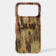 Looking like woodsy outdoors camouflage, this iPhone case has an earthy abstract design blending shades of brown, burny orange and green like tree bark or a wild animal print personalized with Initials. A striking natural abstract born from an original photograph of grass pressed in glass, wild, untamed, and earthy. Bold streaks of amber, rust, and gold mingle.