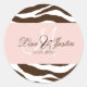 Brown zebra monogram wedding stickers (envelope sealers), shades of pink accent. Great for everyday use. Fully customisable. Fonts and back ground colours can be easily changed. Copyright © 2009 PixDezines.com and PixDezines on zazzle.com
