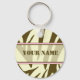 A keychain featuring a brown and beige zebra print background and light pink trim. Personalise with your name over sheer centre section.