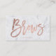 An elegant modern, stylish brows business card with elegant script lettering style typography in faux rose gold foil on a trendy and elegant white marble background.