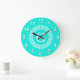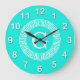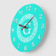 Brt Aqua Wht Greek Key Rnd Frame Initial Monogram Large Clock