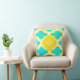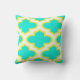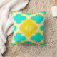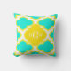 Brt Aqua Yellow Wht Quatrefoil 3 Initial Monogram Cushion