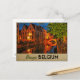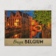 This vintage style design features a beautiful reflective night scene of historic Bruges Belgium with lovely buildings on the canal.