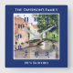 Designed based on watercolor painting of a scene from Bruges, with a view of houses and a traditional bridge over the river shaded by a tree by the river side. Bruges is the capital of West Flanders in northwest Belgium, is distinguished by its canals, cobbled streets and mediaeval architecture. The design has dark blue circle on the outer side and texts that can be personalised on the top and lower side. It will make a lovely addition to your home decor or a housewarming gift for a new home.