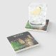 The coasters are gorgeous, a quality feel and heavy weight. They look like a precious archeological find. A rustic stone juxtaposed with a modern floral black and white print. I like the way the print goes slightly imperfect on the cut stone edges giving them a kind-of natural beauty.