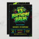 neon 13th birthday invitation, 13th birthday party, 13 thirteen, green black, gamer gaming tech computer pc, boys him tween preteen, modern contemporary futuristic sci fiedgy urban, racing karts auto