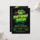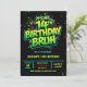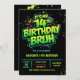 neon 14th birthday invitation, 14th birthday party, 14 fourteen, green black, gamer gaming tech computer pc, boys him tween preteen, modern contemporary, futuristic sci fiedgy urban, racing karts auto, blue green invitation,