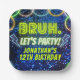 Bruh Let's Party Neon Glow Blue Green Birthday Paper Plate