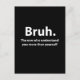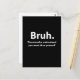 Bruh Typography Bruh Postcard designed by Nisha Prabhu. Send some attitude with this bruh typography postcard! Perfect for any occasion, this bold and catchy design is sure to make a statement. Whether you're saying "hey bro" or just want to add a little flair to your mail, this postcard is the perfect choice. Add some zazzle to your correspondence with this cool and modern design. Order yours today!