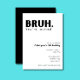 Funny birthday invitation for cool older kids. "Bruh, you're invited" quote with no images, just text. Classic black and white design.