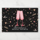 Two pink glass flutes with pink and gold confetti on a black background, these mini sparkling wine bottle labels are perfect for a bridal shower brunch and bubbly theme. MATCHING items in our collection.