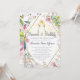 Brunch and Bubbly Green Pink Lily Bridal Shower Invitations for a champagne themed floral event. Beautiful soft pastel pink and green watercolor painting with pink lily flower and greenery and geometric gold lines in the frame. Feminine floral with a modern edge.