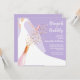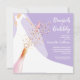 Brunch and bubbly bridal shower invitations feature a bride in her gown and veil on a lavender background with a champagne bottle, glass and faux sequins and your details in chic white lettering. **TIP: Square size REQUIRES EXTRA POSTAGE. You can CHANGE THE BACKGROUND COLOR to anything with our design tools, just click on Customise further link.