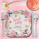 These modern, elegant square paper plates feature a beautiful floral watercolor border of pink garden flowers with your details in chic lettering, perfect for any occasion. MATCHING items available in our collection.
