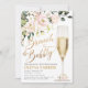 Bridal Shower invitation features gold pink flowers, champagne glass and shiny lettering. This design is ideal for someone having a bridal brunch shower.