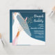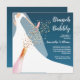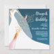Brunch and bubbly bridal shower invitations feature a bride in her gown and veil on a teal background with a pink champagne bottle, faux sequins and pink glass with your details in chic white lettering. **TIP: Square size REQUIRES EXTRA POSTAGE. You can CHANGE THE BACKGROUND COLOR to anything with our design tools, just click on Customise further link.