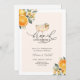 Brunch and Bubbly Post-Wedding Brunch invitation. Customise with your information for the newlyweds. Featuring a champagne glass with orange blossoms.