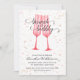 Brunch and bubbly bridal invitations with two pink champagne flutes on a background of pink and gold confetti, perfect for a brunch or luncheon bridal shower. MATCHING items in our collection.