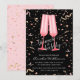 Brunch and bubbly bridal invitations with two pink champagne flutes on a black background with pink and gold confetti, perfect for a brunch or luncheon bridal shower. MATCHING items in our collection.