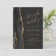 The left-hand edge of this elegant modern brunch and bubbly bridal shower invitation features a black watercolor agate border trimmed with faux gold glitter. The customisable text combines gold-coloured handwriting, copperplate and italic fonts on an off-black background. The reverse side features a matching black and gold agate design.