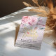 Brunch and Bubbly Bridal Shower Invitation Card Templates - Elegant Watercolor Natural Boho Floral Feather and Faux Gold Foil Handwritten Script on Old Grunge Rustic White Wood Background.