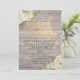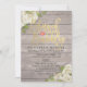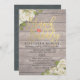 Bridal Shower / Wedding Celebration Invitation Card Templates - Faux Gold Foil Script with White Roses Floral and String Lights on Rustic Wood Background.