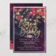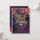 Bridal Shower / Wedding Celebration Invitation Card Templates - Burgundy Marsala Red Watercolor Floral, String Lights and Gold Script on Purple Sparkle Bokeh Lights Background.