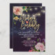 Bridal Shower / Wedding Celebration Invitation Card Templates - Faux Gold Foil Script, Elegant Watercolor Floral Peach White Roses and String Lights on Purple Sparkle Bokeh Lights Background.