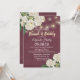 Bridal Shower / Wedding Celebration Invitation Card Templates - Elegant White lovely Watercolor Hydrangea Flowers and String Lights on Burgundy Red Background.