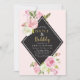 Brunch & Bubbly Floral Gold Bridal Shower Invitation with watercolor flowers and diamond text box