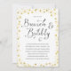 This chic couples shower party invitation features the phrase "Brunch and Bubbly" written in black calligraphy, glam faux glitter, and faux gold foil dots. Additional text or photos can be added to the back of the card if needed. This invite can also be used for a wedding rehearsal brunch instead of a couples shower.