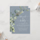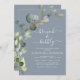 Brunch and Bubbly Eucalyptus Dusty Blue Greenery Succulent Botanical Watercolor Emerald Green Spring Wedding Bridal Shower Invitations on white background - includes beautiful and elegant script typography with modern botanical leaves and greenery for the special Bride to Be celebration.