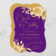 BRUNCH & BUBBLY Gold Floral Bridal Shower Purple Invitation