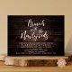 Planning a brunch celebration with the newlyweds the day after the wedding? Invite guests with this "Brunch with the newlyweds", modern calligraphy design themed Post Wedding Brunch Invitation Card in cottage brown wood background theme.