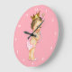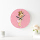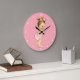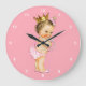 Pink custom vintage brunette baby Princess clock with white numbers. Elegant, classy custom vintage princess baby clock with a beautiful vintage illustration of a cute and adorable baby girl with brown hair, stylish gold Princess crown, pearls, sweet bunny rabbit slippers, pink diaper with ruffles and a pink bow in her hair on a pretty pink background. Chic, trendy, glamourous, girly, fun, fashionable clock which would be a perfect baby shower gift for baby girls showers or a gift for the new baby girl's nursery. If you need any assistance customising your product please contact me through my store and I will be happy to help. I have lots of products with this lovely design in my store.